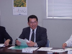About 40 persons, including the staff of Ariake Machine Works and cooperating companies attended the Safety Presentation. At the beginning of the Presentation, Mr. Takeo Koike, President of Hitachi Zosen Diesel and Engineering Co., Ltd. gave an address and said, "We are engaged in the manufacture of nuclear-related machinery and recognize the safety management of nuclear energy as a whole as a very important subject of daily activities. Although safety management is our daily routine, internal control tends only to be dependent on the tolerance of the internal staff. We would like to review our daily safety management through today's presentation and information exchange sessions."